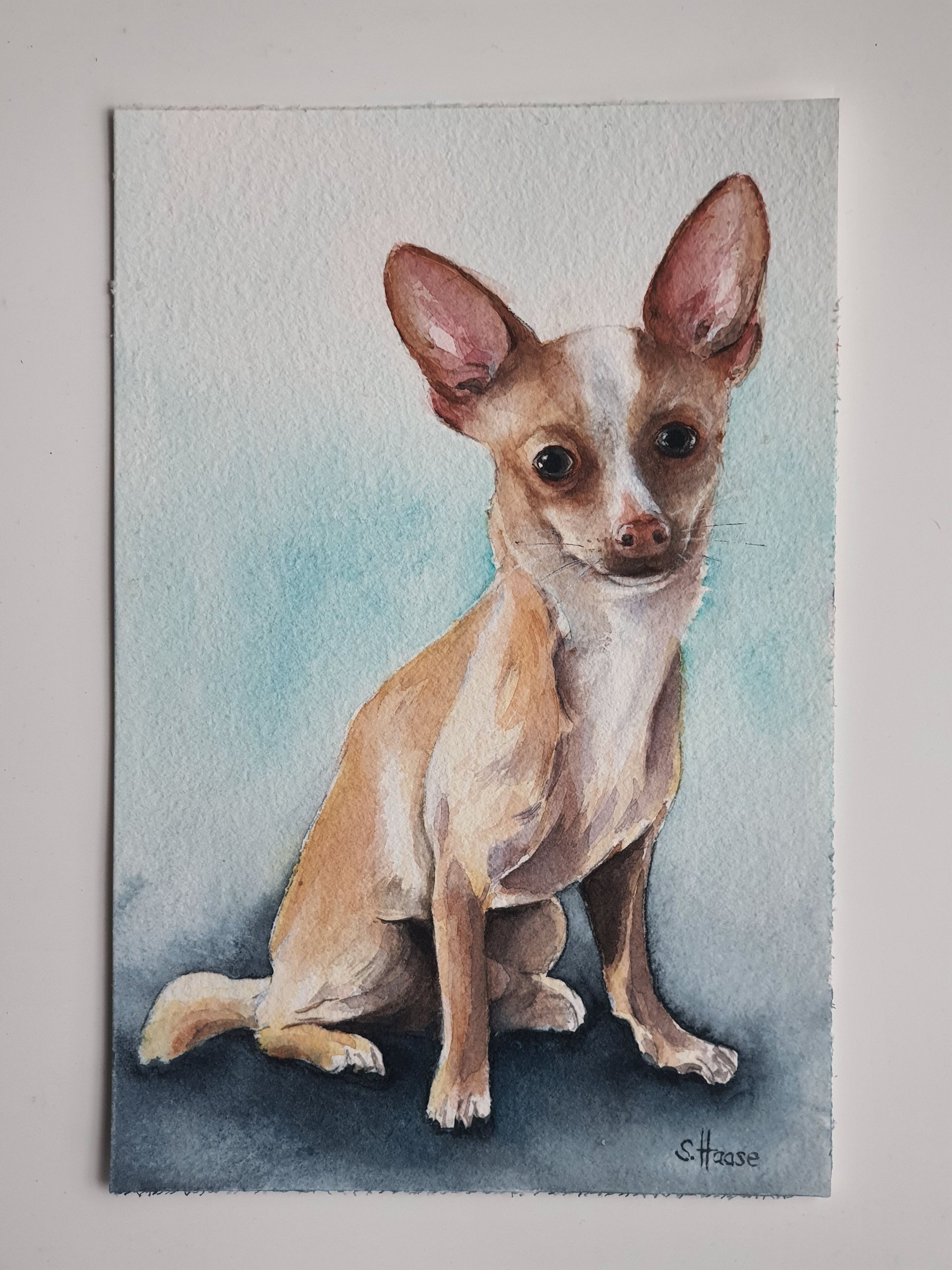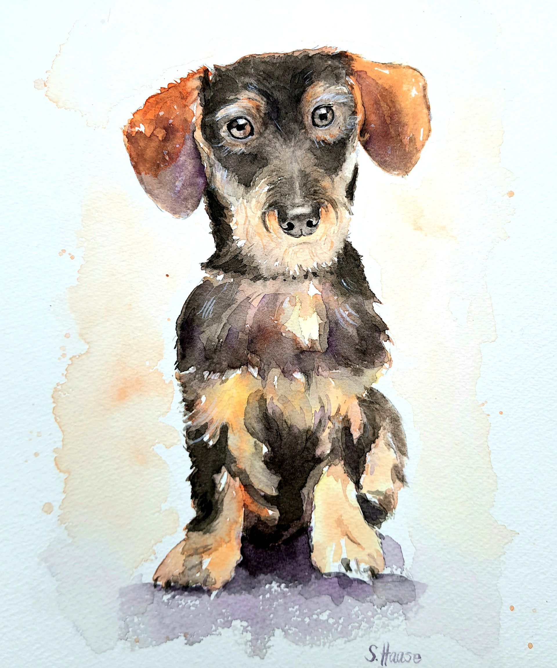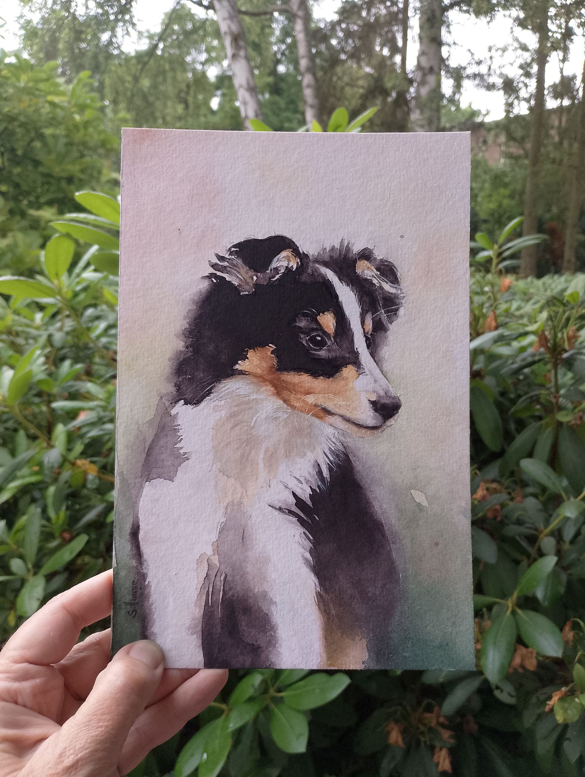 How about a unique original animal watercolor as a gift, a keepsake, or just for fun? I also enjoy painting your pet based on a photo reference in different sizes on 600g watercolor paper from Hahnemühle. Painting according to the customer's ideas, thinking of their very special animal, and getting closer to the completion of the work with each brushstroke is something truly special and exciting. Completing such a pet watercolor always makes me particularly proud.