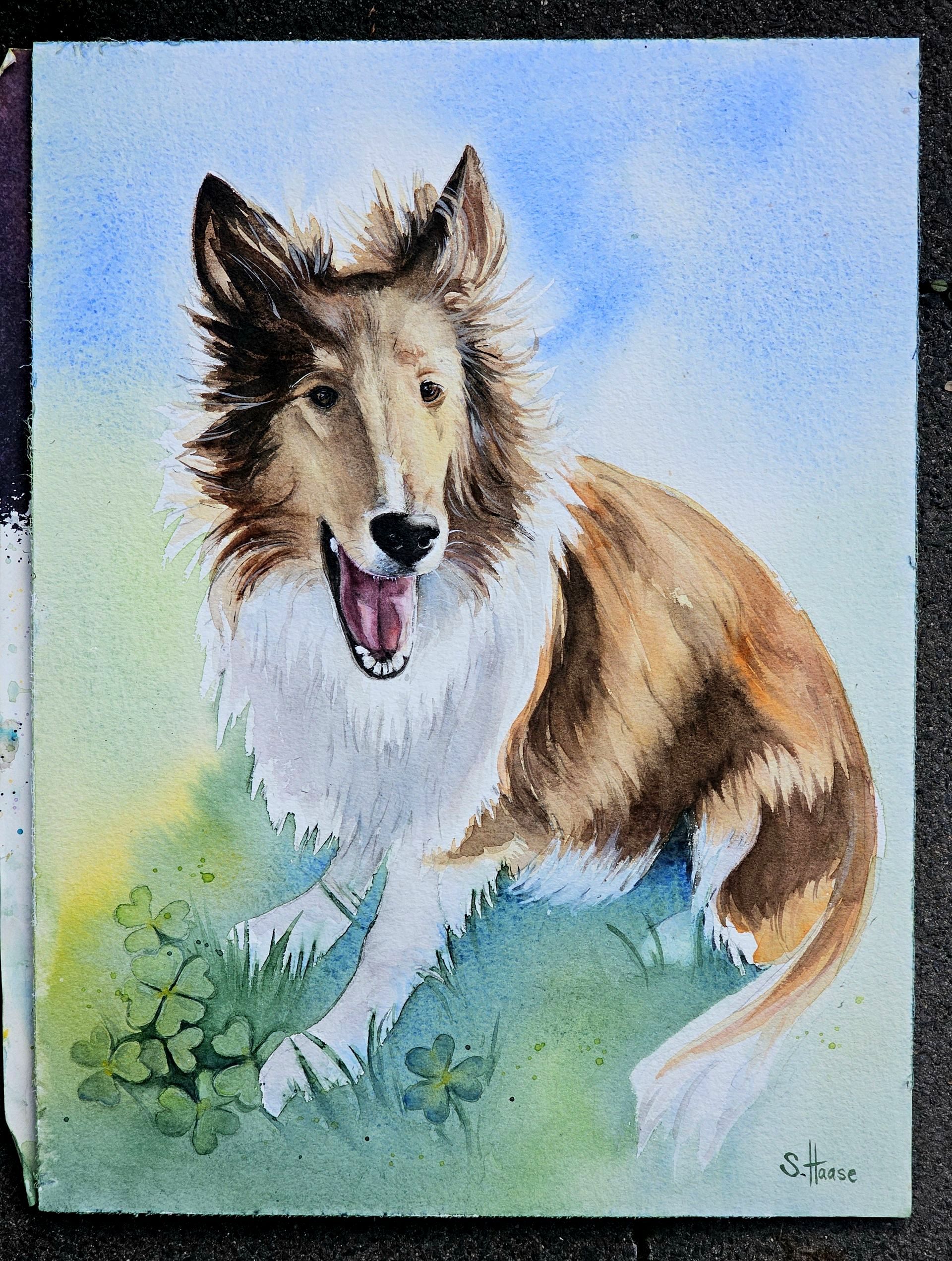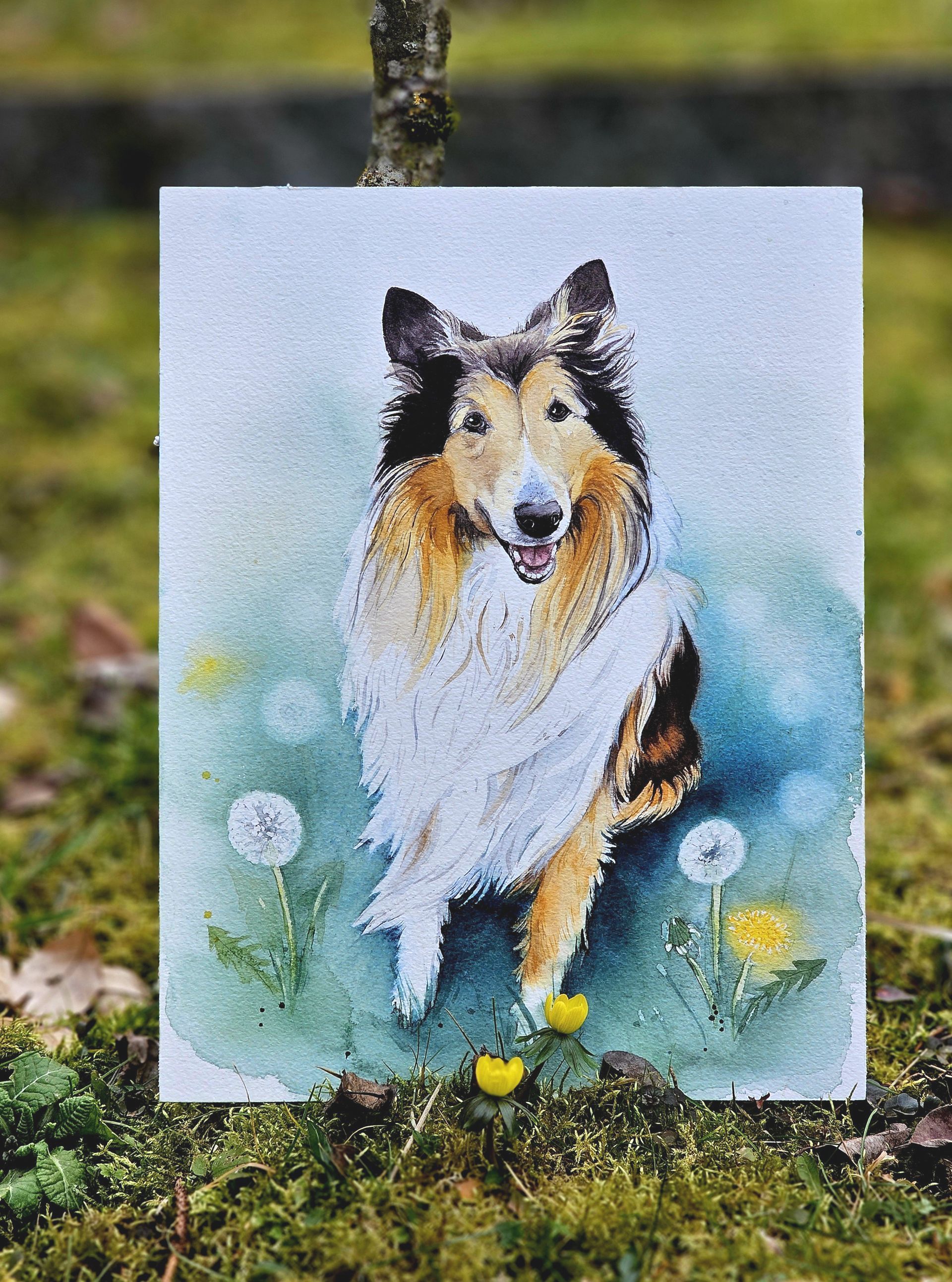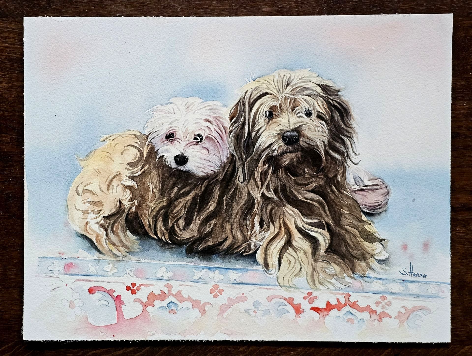 How about a unique original animal watercolor as a gift, a keepsake, or just for fun? I also enjoy painting your pet based on a photo reference in different sizes on 600g watercolor paper from Hahnemühle. Painting according to the customer's ideas, thinking of their very special animal, and getting closer to the completion of the work with each brushstroke is something truly special and exciting. Completing such a pet watercolor always makes me particularly proud.