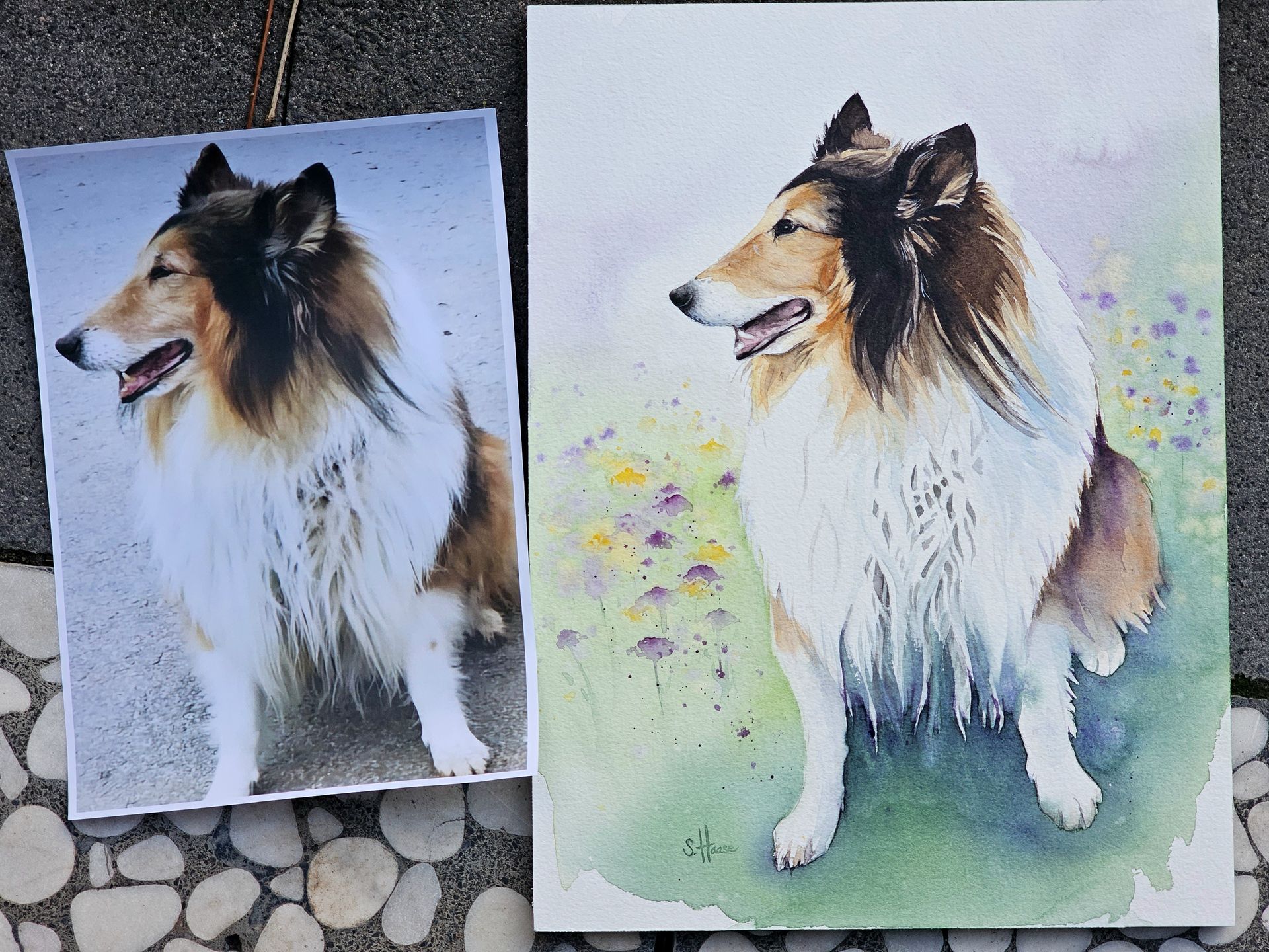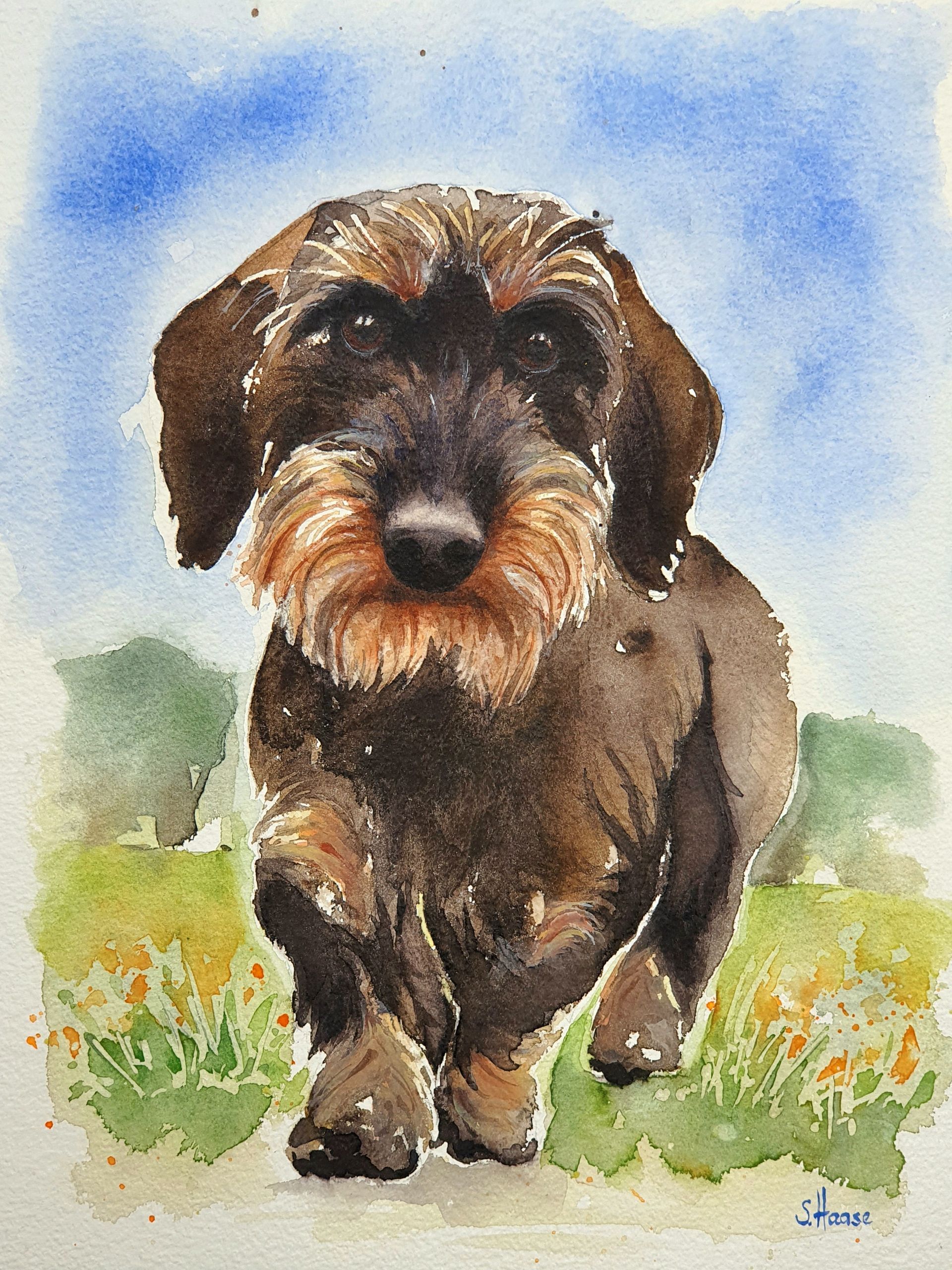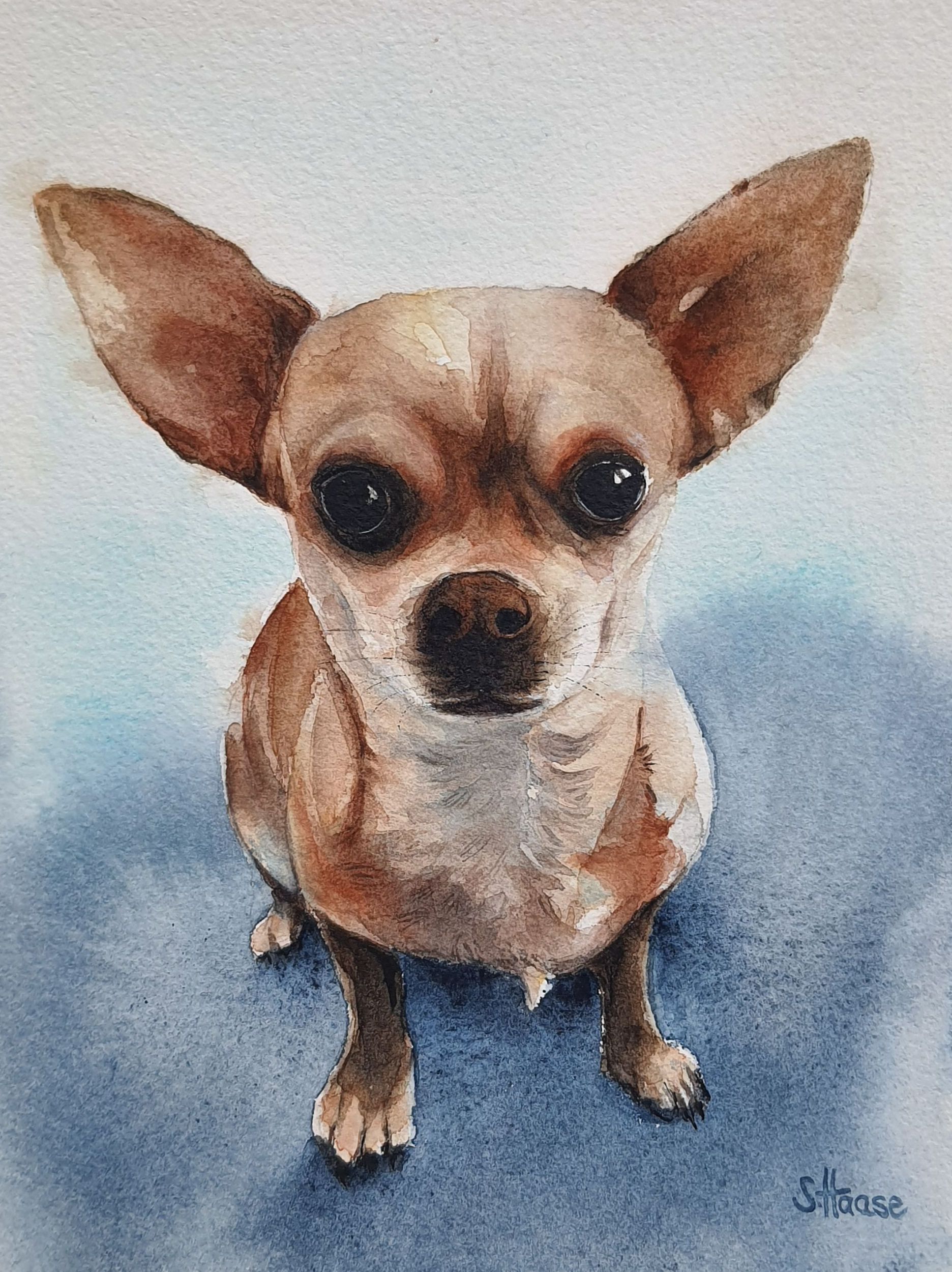 Nach den Vorstellungen des Kunden zu malen, in Gedanken bei dessen ganz besonderen Tieres zu sein und mit jedem Pinselstrich der Vollendung des Werkes näherzukommen, ist etwas ganz Besonderes und Spannendes. Die Fertigstellung eines solchen Haustieraquarelles macht mich immer besonders stolz.
