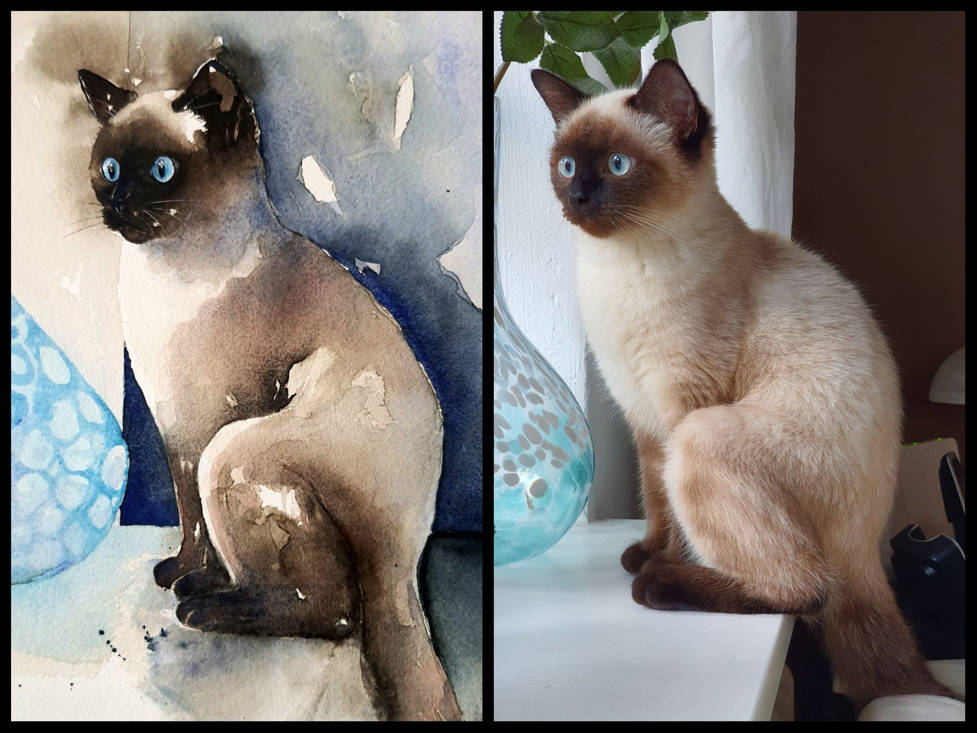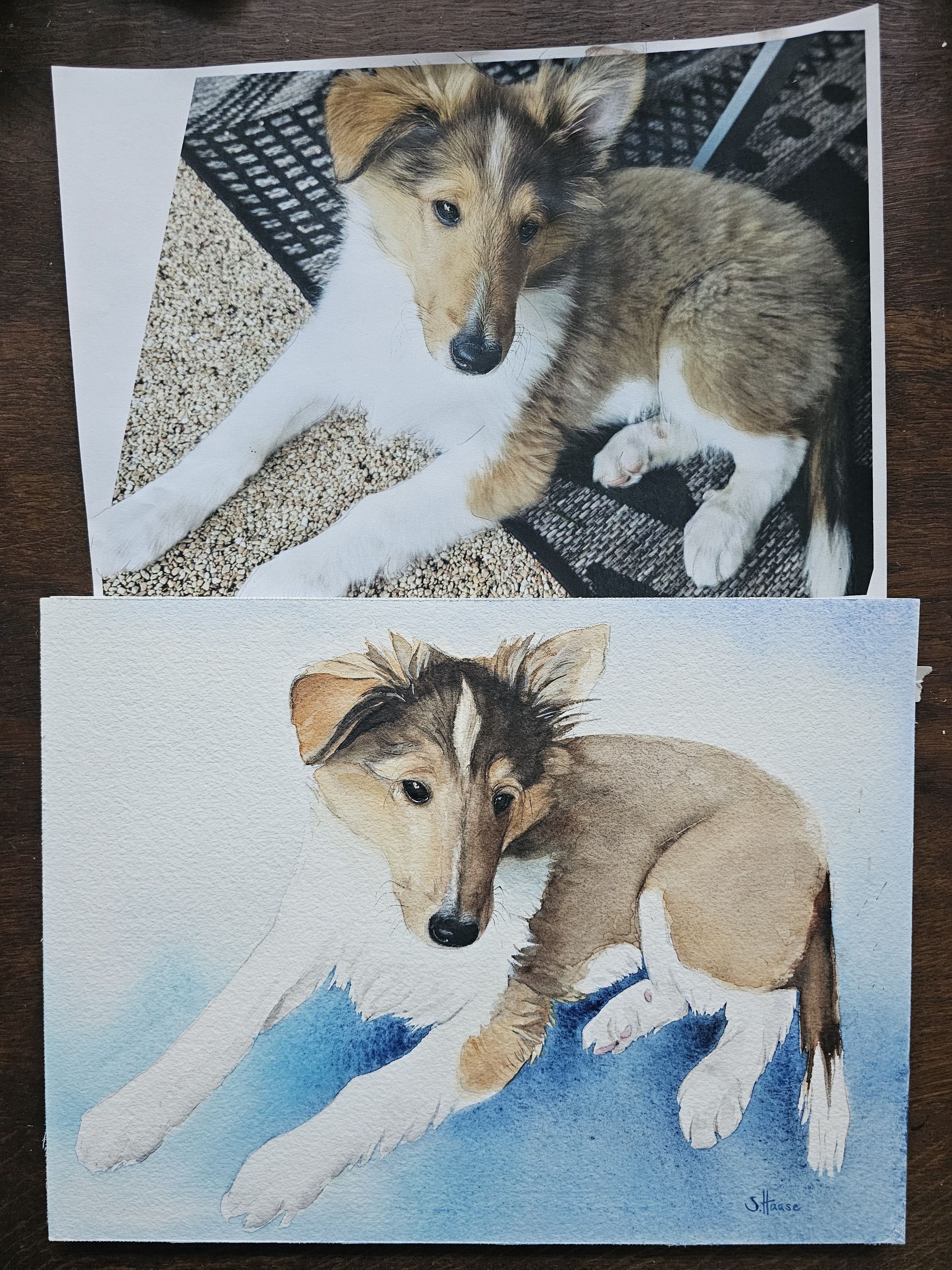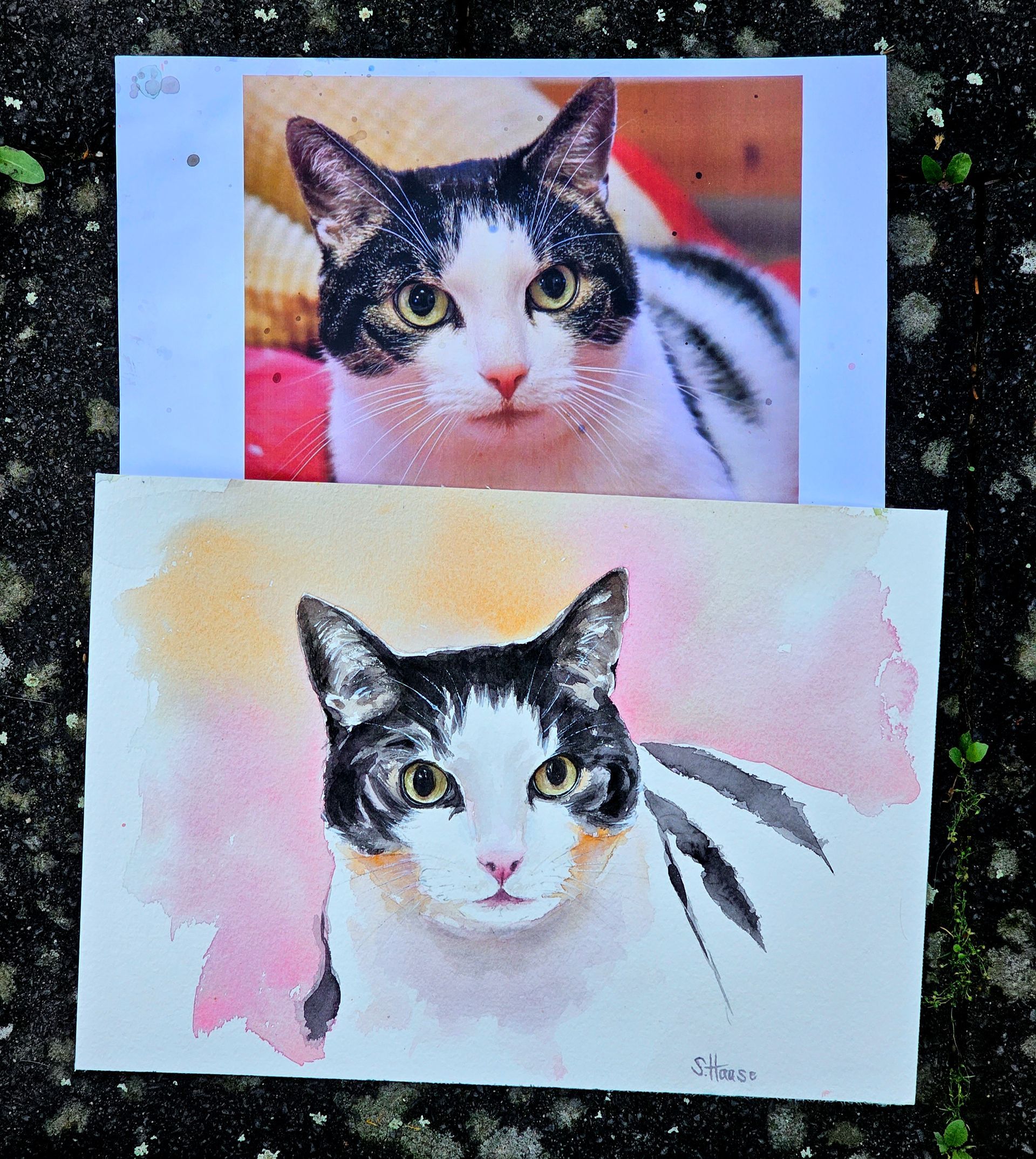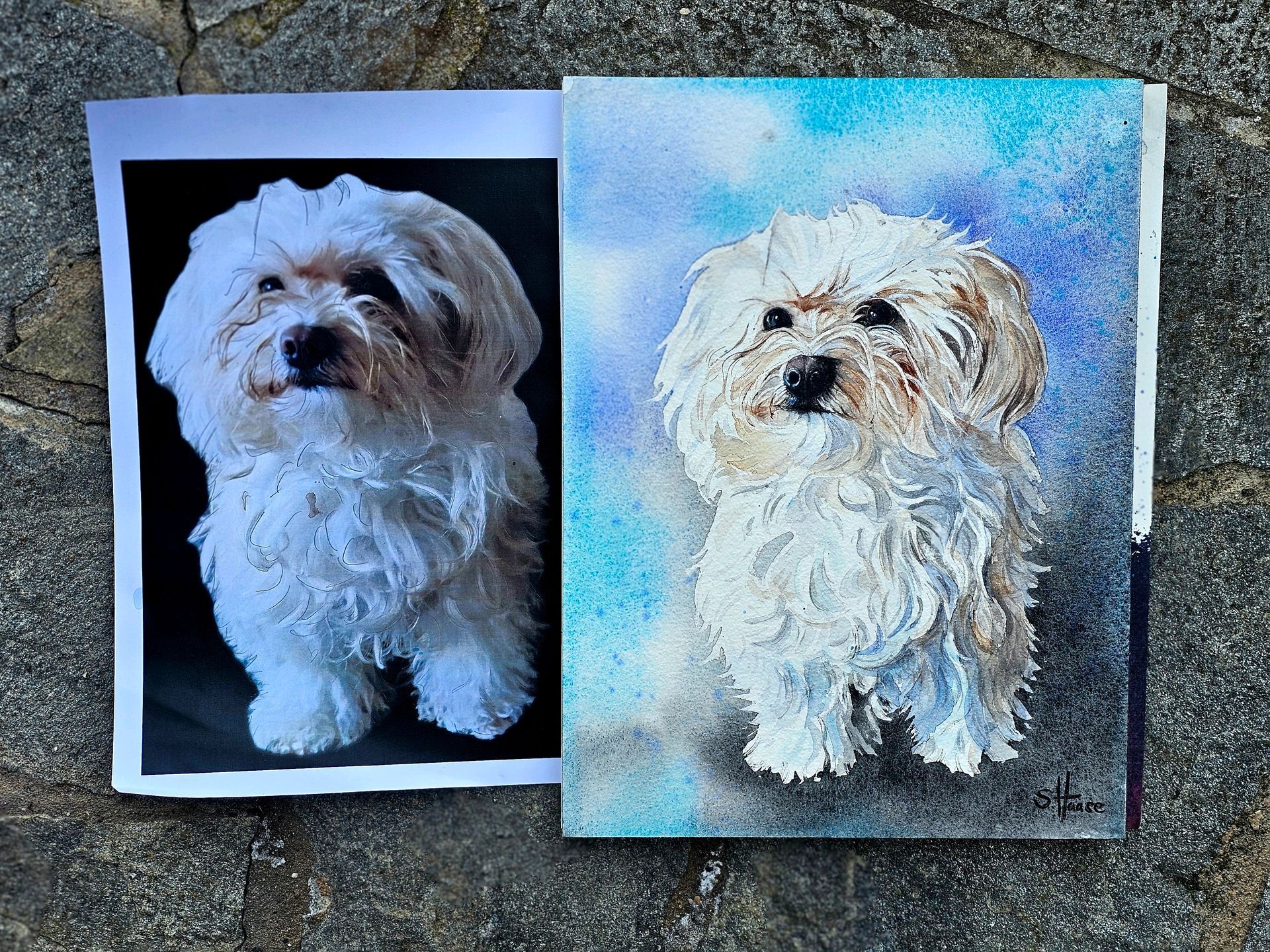 Nach den Vorstellungen des Kunden zu malen, in Gedanken bei dessen ganz besonderen Tieres zu sein und mit jedem Pinselstrich der Vollendung des Werkes näherzukommen, ist etwas ganz Besonderes und Spannendes. Die Fertigstellung eines solchen Haustieraquarelles macht mich immer besonders stolz.