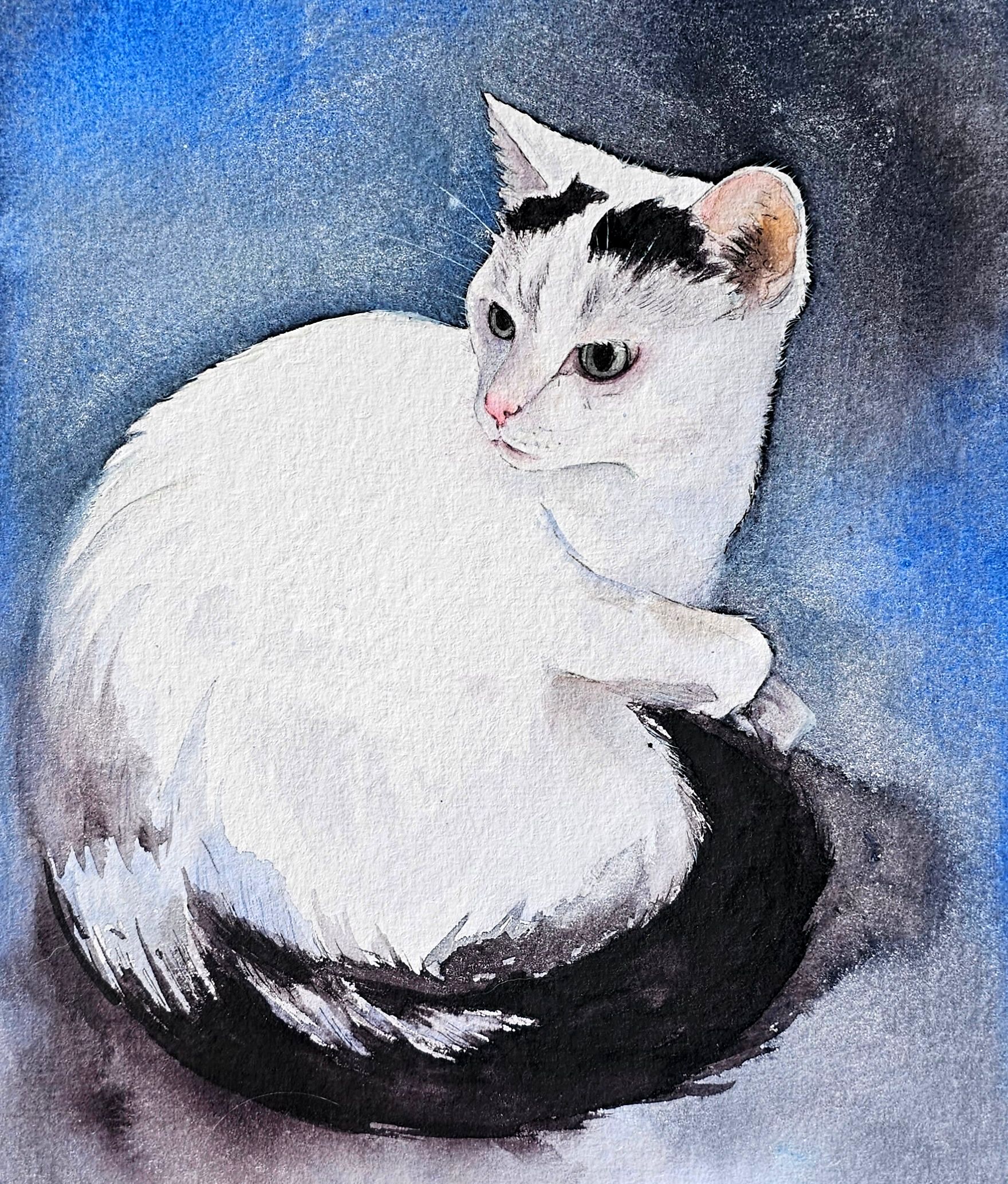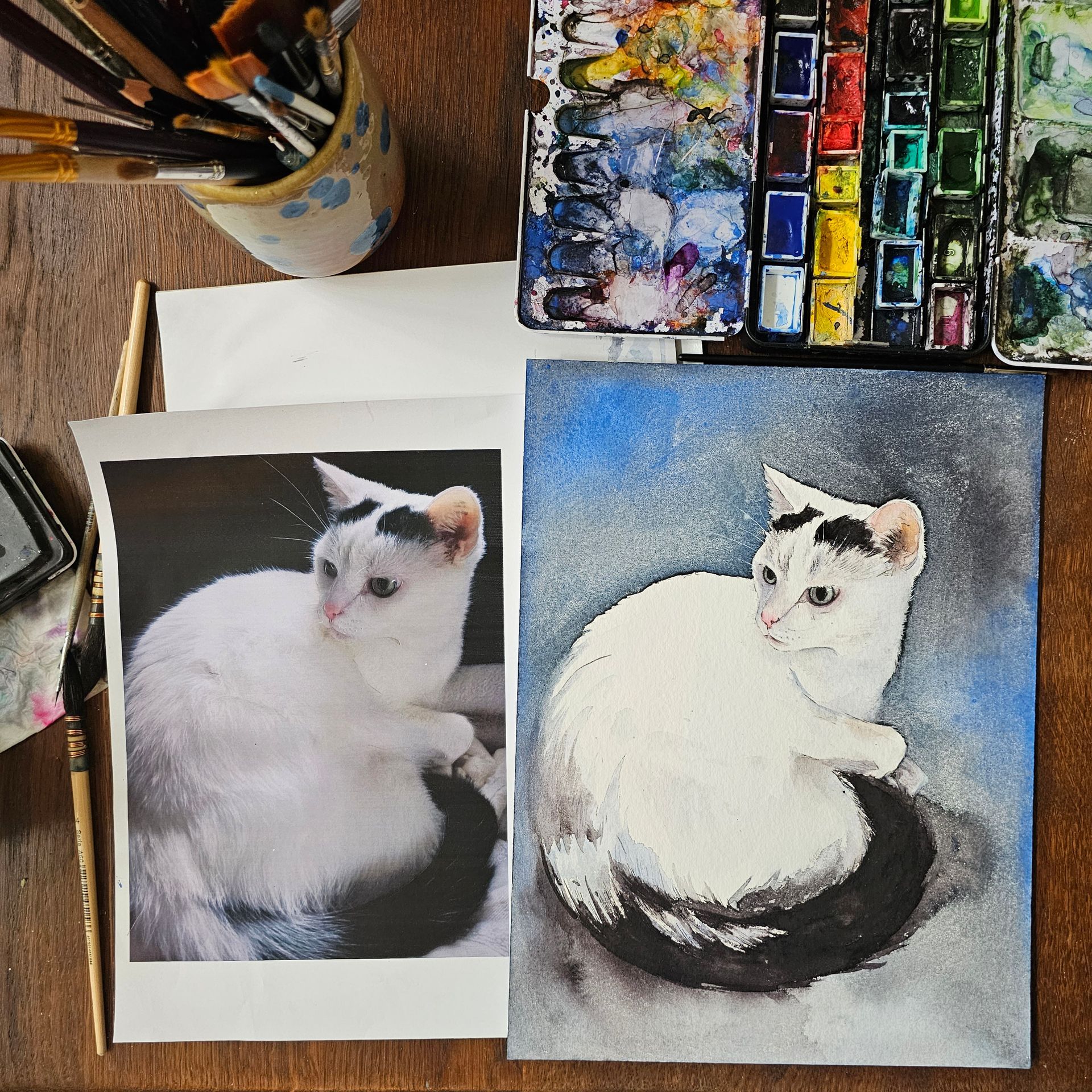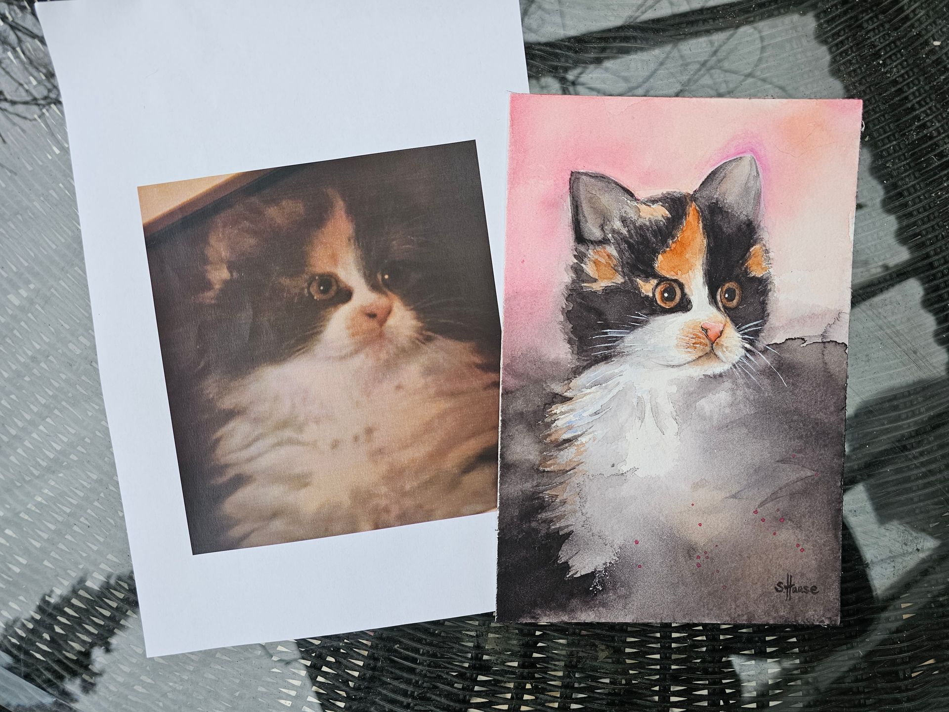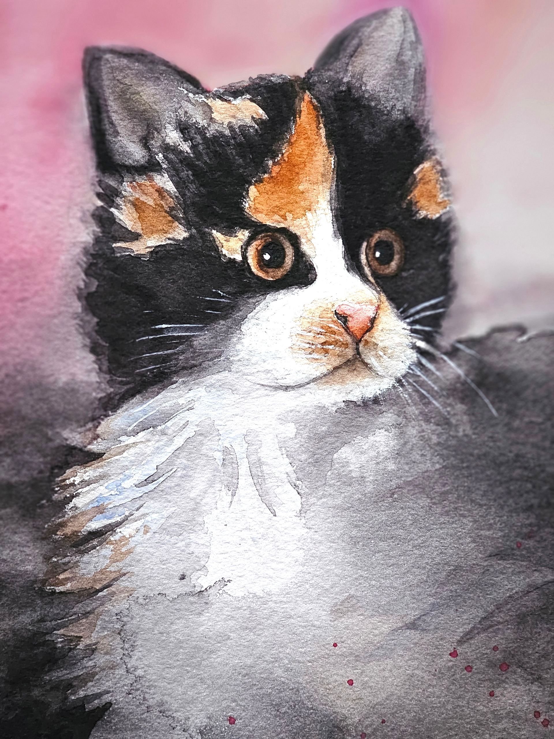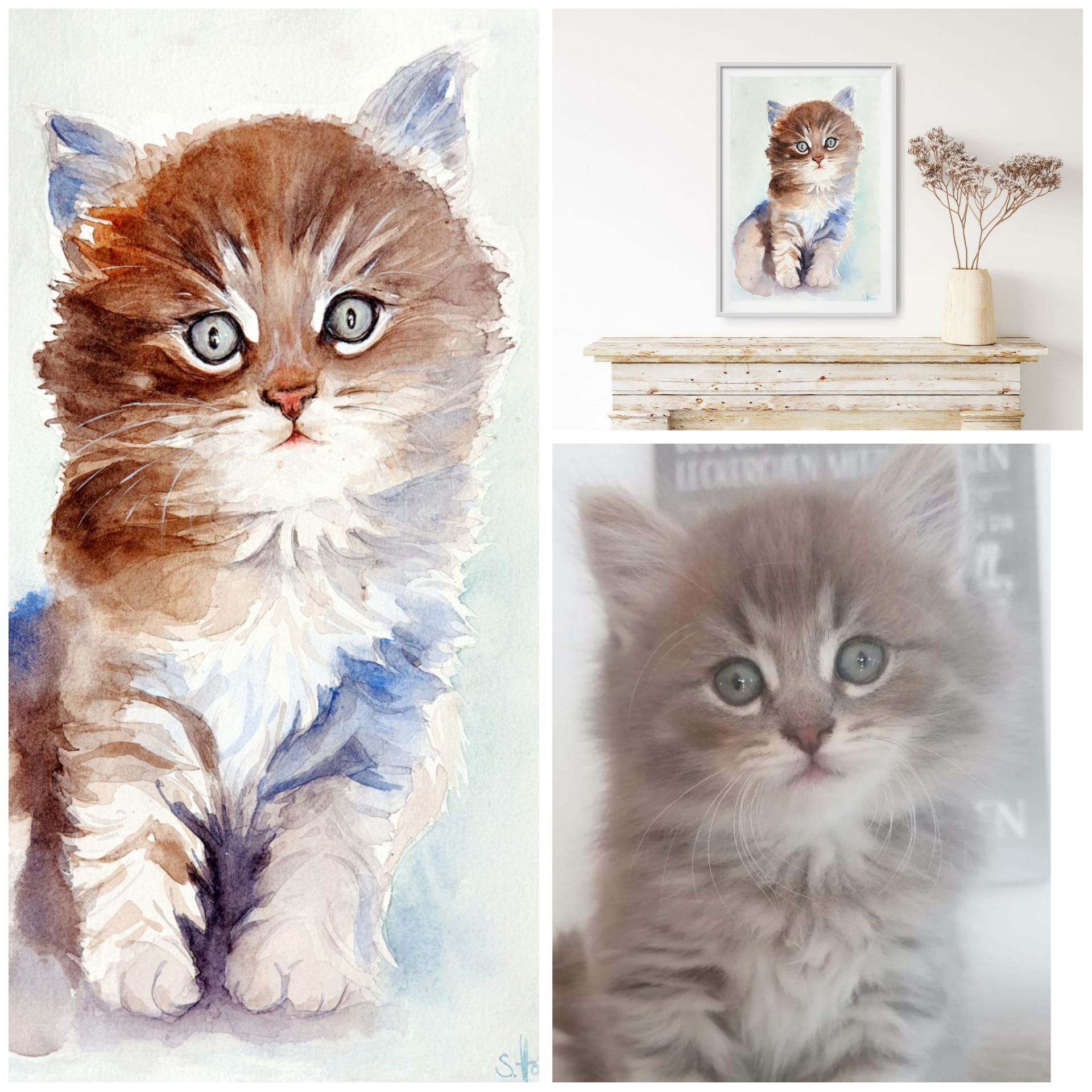 Zur Erinnerung habe ich das Kätzchen eines lieben Katzenbesitzers gemalt. Sie musste ihn aus gesundheitlichen Gründen abgeben und war sehr traurig.