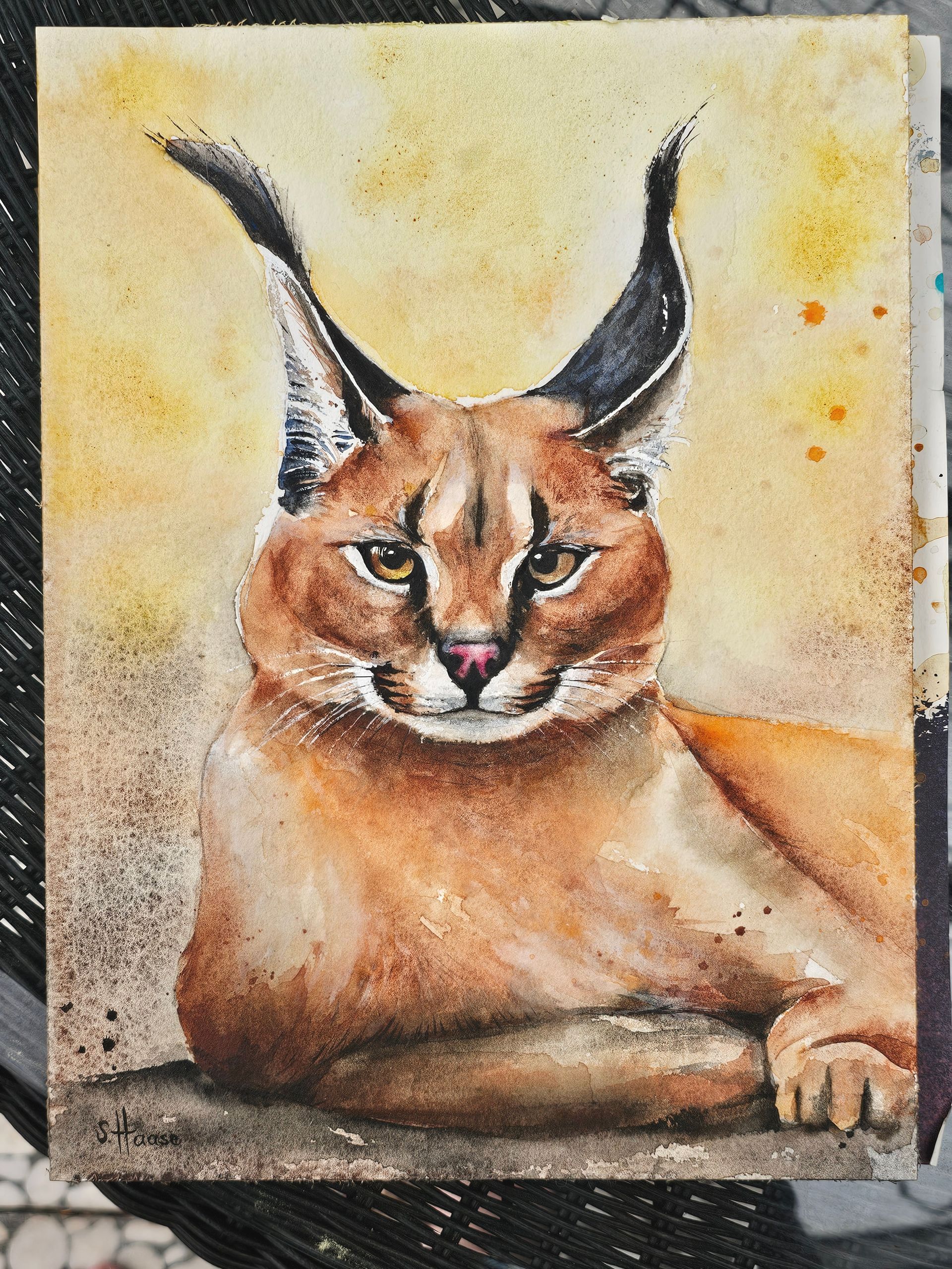 Der Karakal war der Auftrag einer Dame, die das Bild ihrem Freund, welcher diese Tiere bewunderte, zum Geburtstag schenken wollte.
