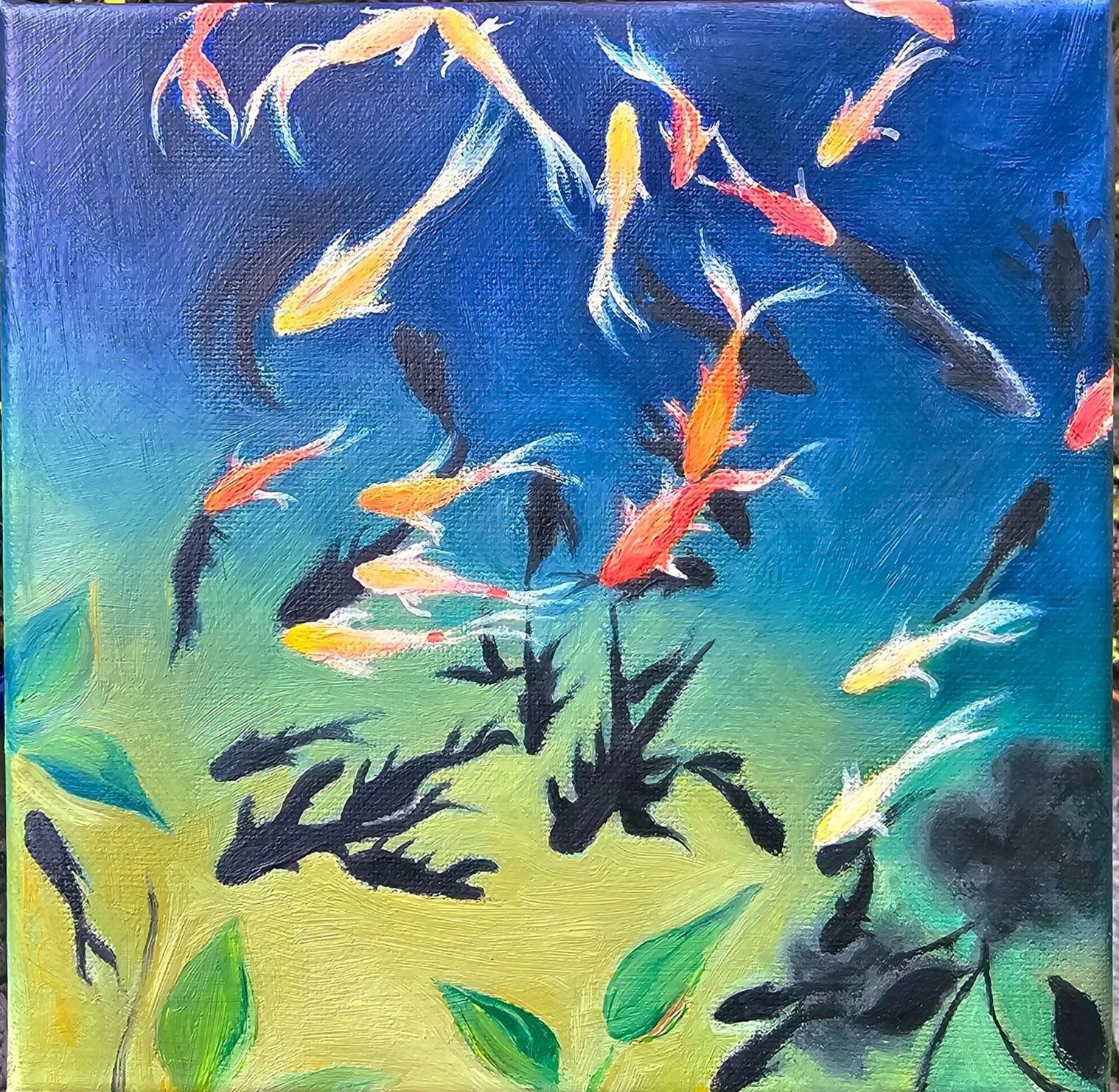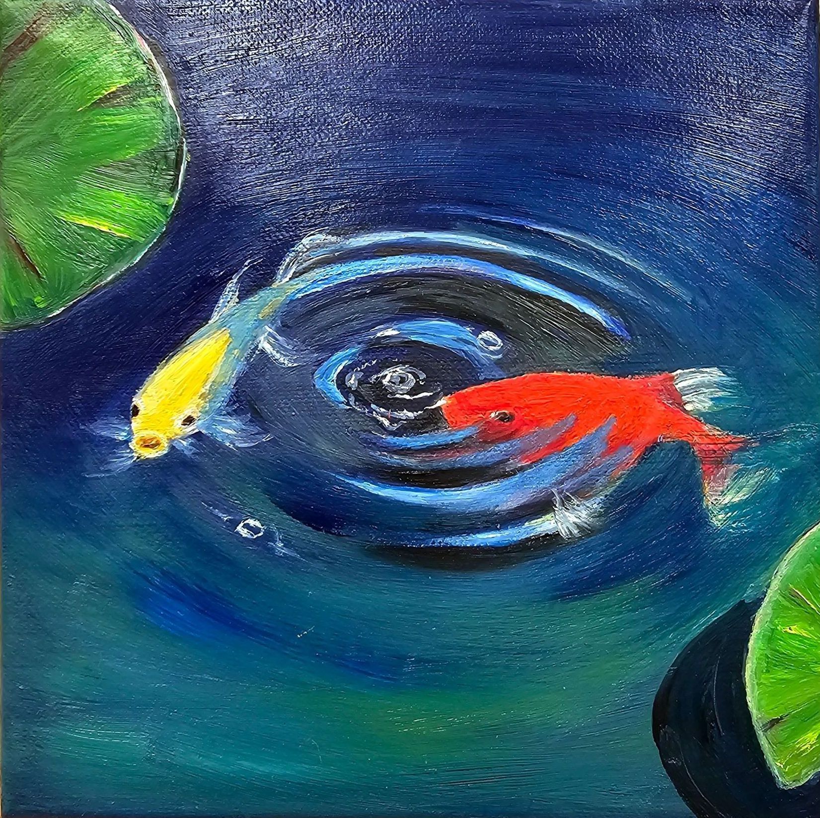 Die Teiche in meinem Garten haben es mir angetan. Voller Spannung und freudiger Erwartung schaue ich jeden Tag bei ihnen vorbei. Und immer gibt es Neues und Schönes zu entdecken. Eine neue Blüte, ein hübsches Insekt und kürzlich erst ein ganzer Schwarm kleiner Jungfische. Die Eindrücke sind endlos und erfüllen mit einer Glückseeligkeit, die mich noch für ein paar Minuten begleitet, auch wenn ich diesen magischen Ort bereits wieder verlassen habe. Einige dieser Momente halte ich auf Papier oder Leinwand fest. Alle Motive stammen von meinen eigenen Teichen.