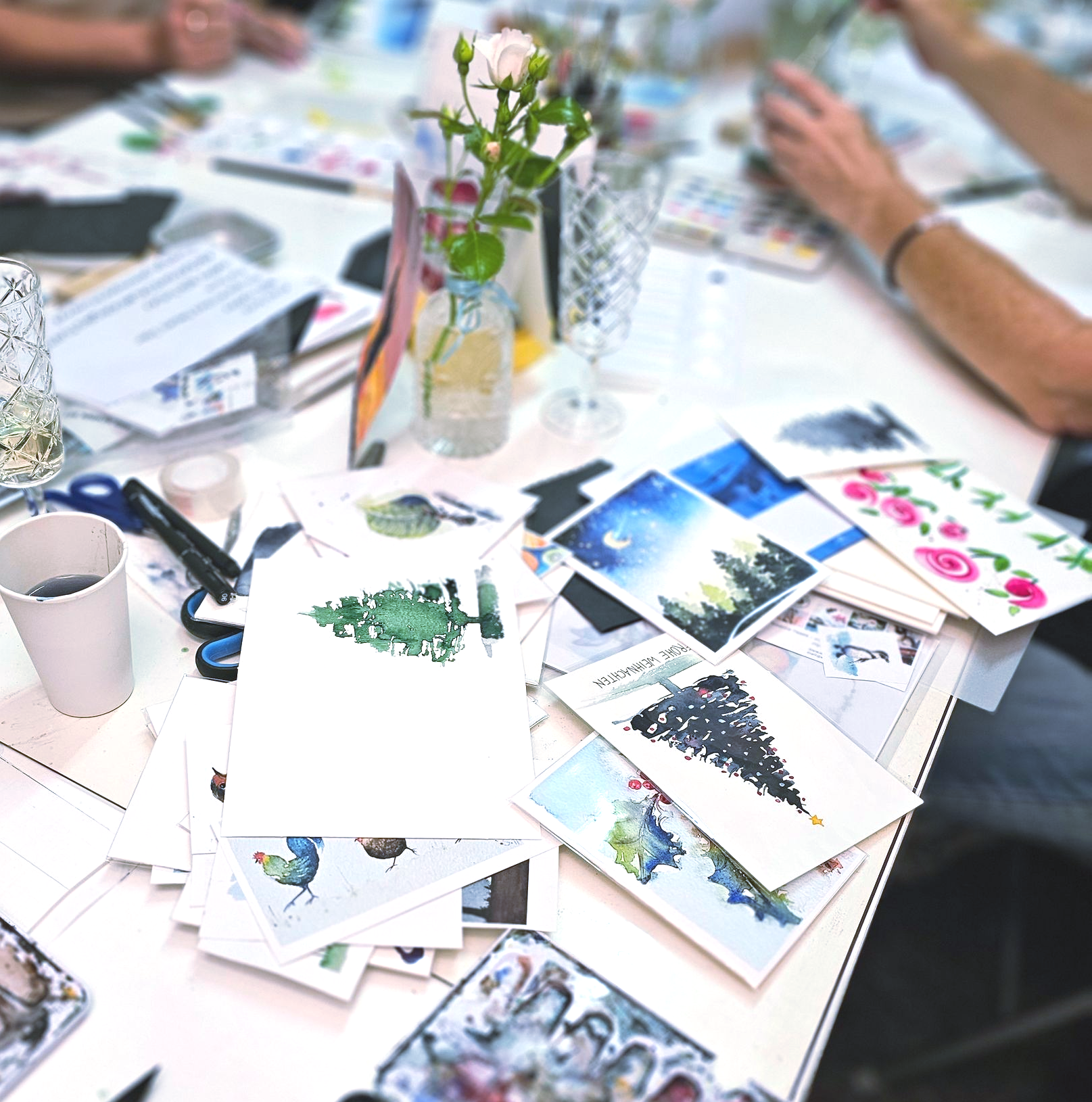 - Spezielle "Aquarell-Leinwände" können im Kurs erworben werden.