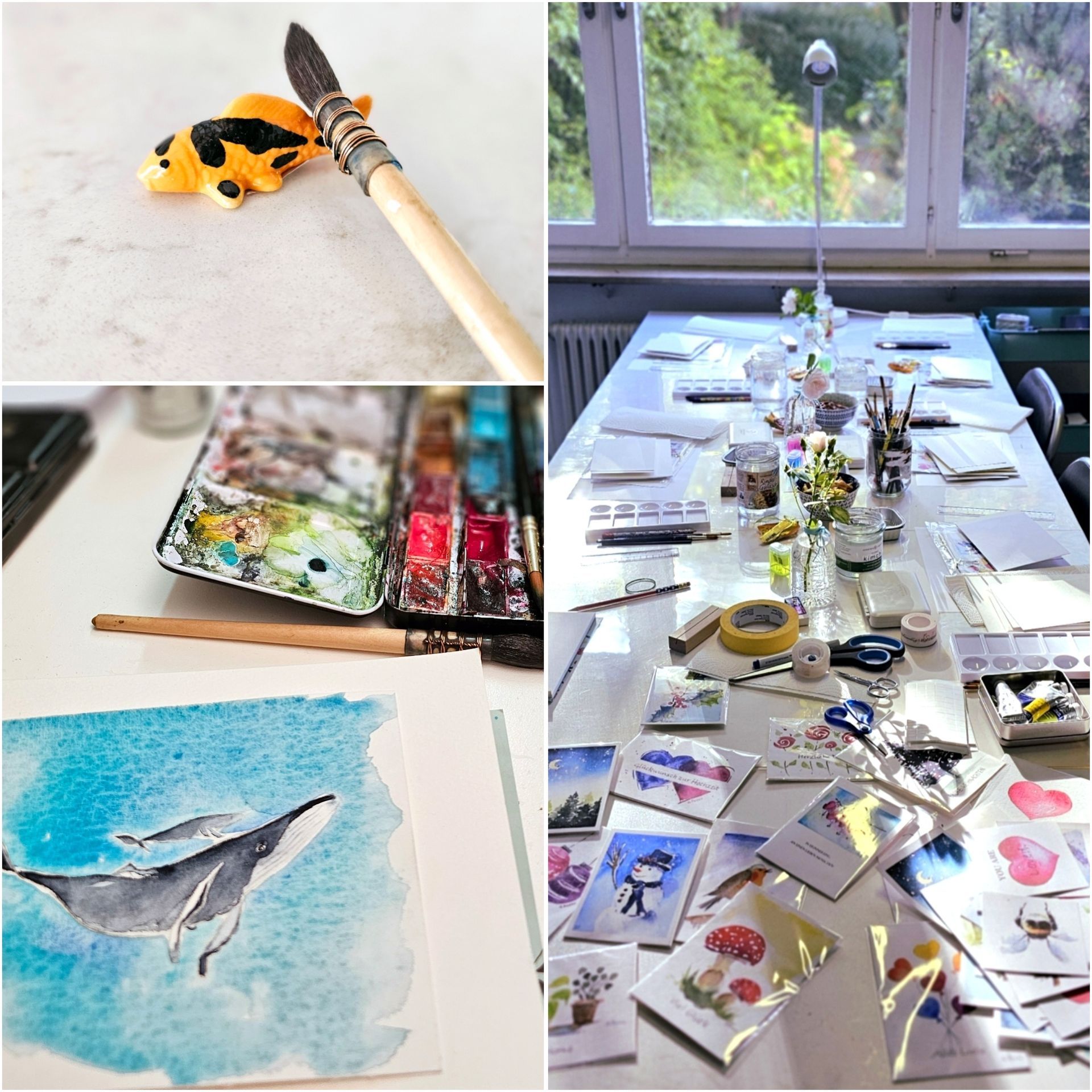 - Fee 58,- € per session and person including materials. Special "watercolor canvases" available for purchase during the course.